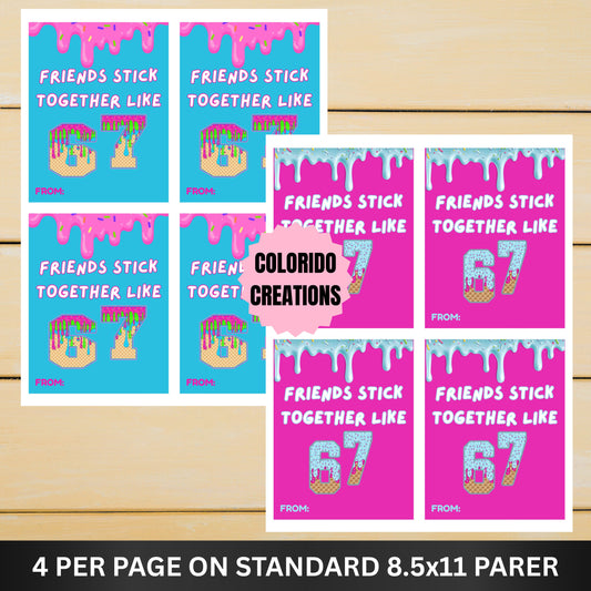 Friends Stick Together Like 6-7 Valentine’s Exchange Cards – Digital Download